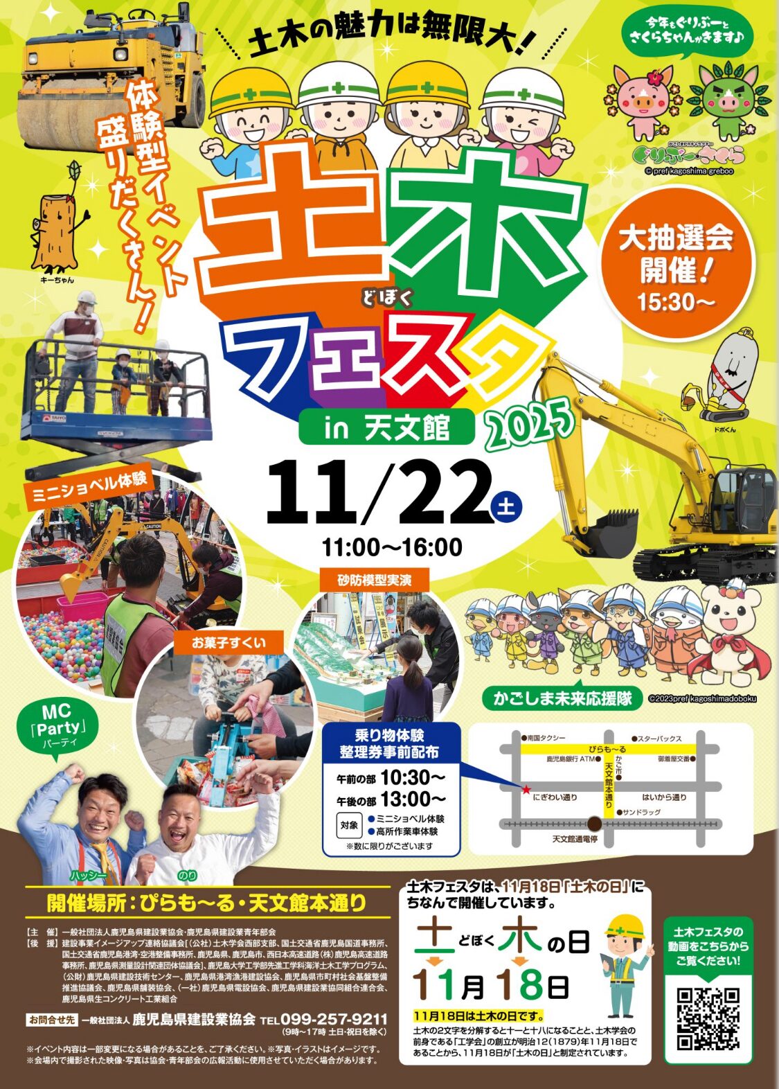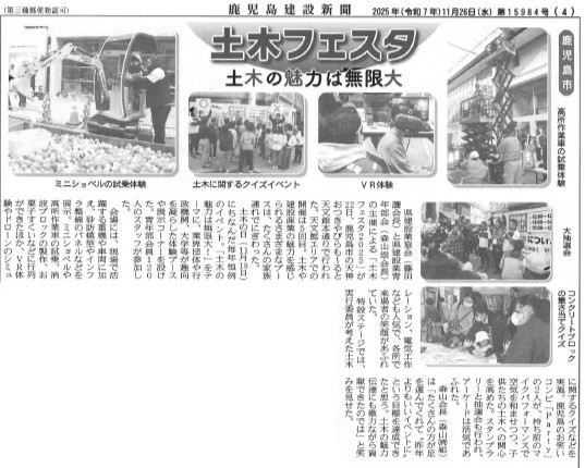 令和7年11月22日、鹿児島県建設業協会と鹿児島県建設業青年部会主催の「土木フェスタ2025」に参加しました。